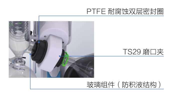 ● 獨(dú)特斜式雙層蛇形盤管設(shè)計(jì),冷卻面積達(dá)到0.15m 2 ,最大蒸發(fā)能力可達(dá)到Max.22ml/min;確保從少量到大量樣品均能高效回收。