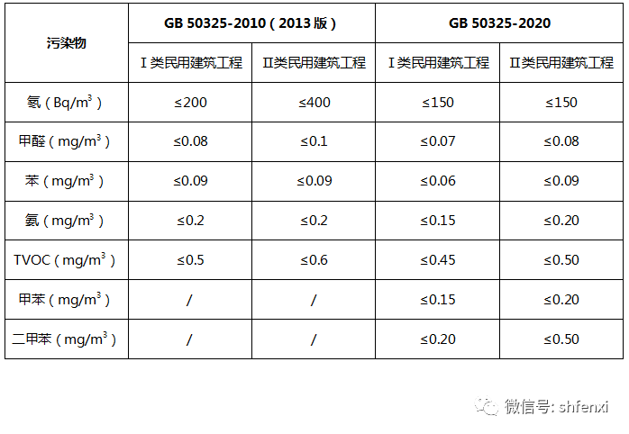 表2 新版GB50325-2020標(biāo)準(zhǔn)限值變化