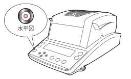 本水分儀依靠主機(jī)底面后部中央的固定點(diǎn)(1點(diǎn))和前方左右兩個(gè)水平調(diào)節(jié)支腳(2點(diǎn))維持水平。根據(jù)水平儀狀態(tài)判斷裝置是否水平。