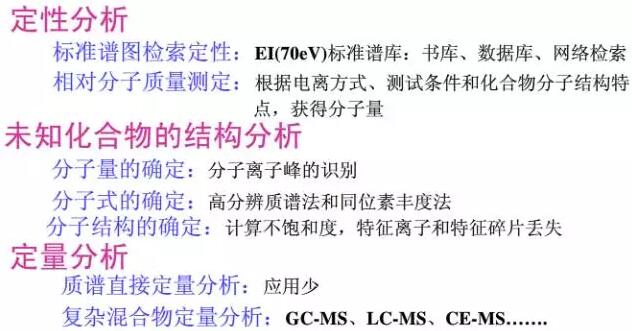 質譜:定性、定量,可以推測物質的組成;