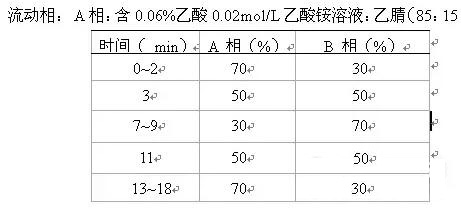 色譜條件:色譜柱:phenomenex C18柱(100x3.0 mm,2.6 μm)預(yù)柱 Agilent 預(yù)柱