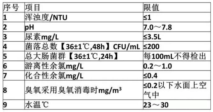 表1游泳池池水水質(zhì)常規(guī)檢驗(yàn)項(xiàng)目及限值