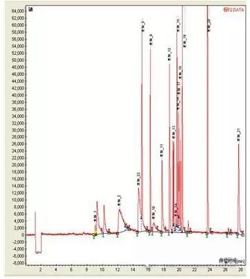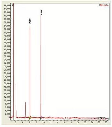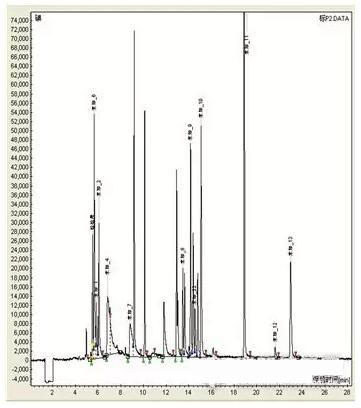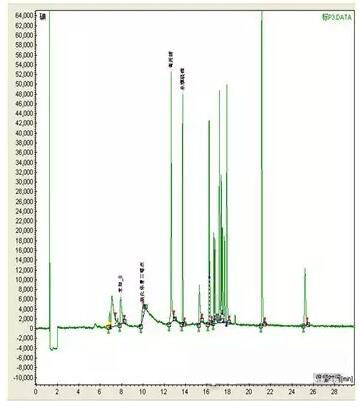 我們對(duì)上面的程序升溫條件進(jìn)行了優(yōu)化,柱溫由100℃降到80℃,程序升溫:80℃保持1min,8℃/min升到250℃,保持6.0min,共28.25min.